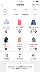 添加功能,将需要洗护的衣物点击添加,以便进行结算;