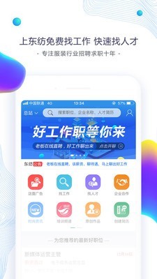 东纺招聘app是一款专注于服装人才的求职招聘软件,使用东纺招聘app,就能为你快速找到合适的工作,超多高薪职位等你来争取。平台专注于服装行业招聘十年,专注服装人才招聘求职体验在升级,最新版上线了在线直聊功能,通过与hr的在线聊天,提升了沟通效率和入职几率,服装招聘求职找工作必备。