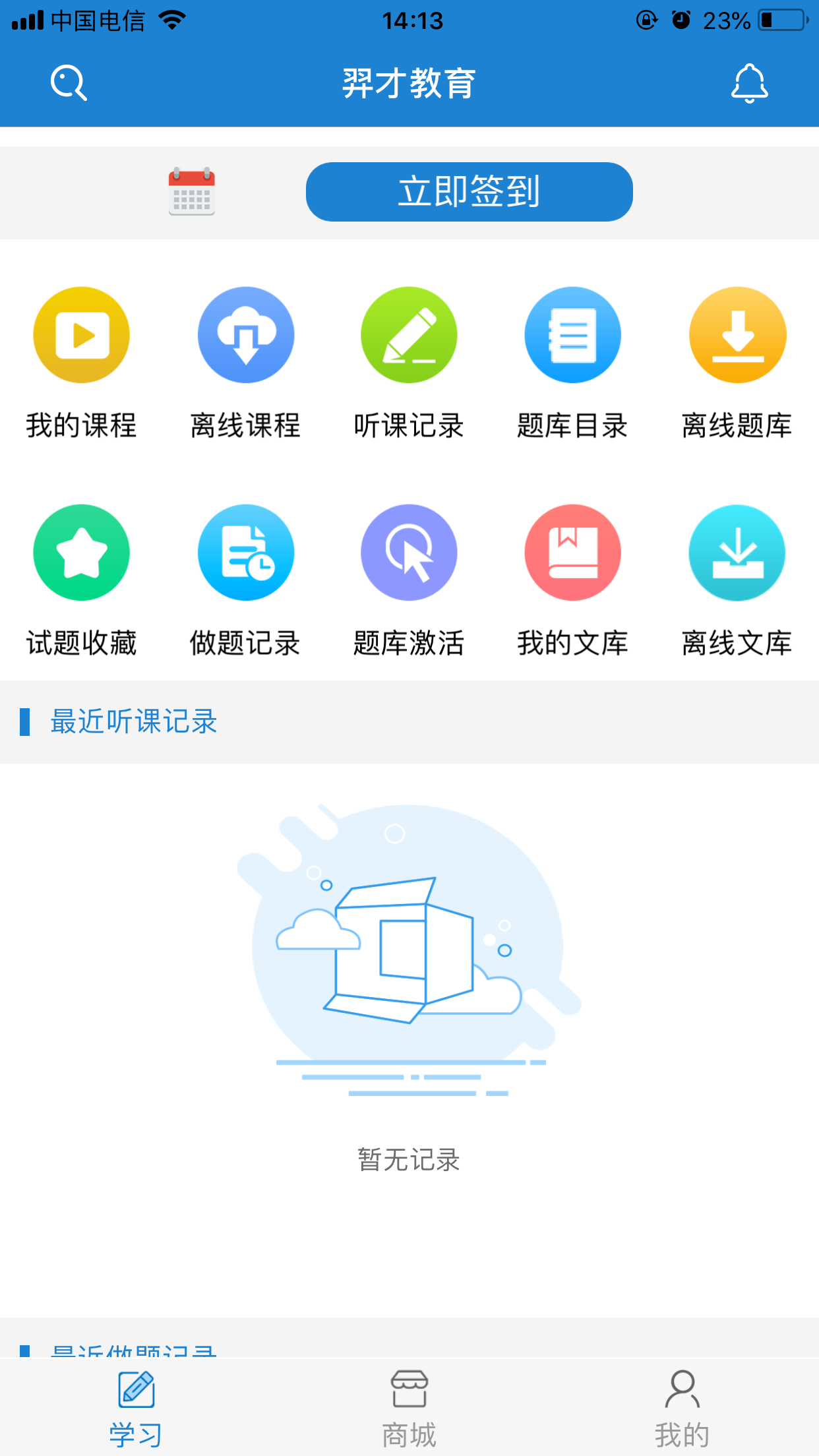 3、更有专业的商城、学习、和个人中心三大板块,实时同步自己的学习记录。