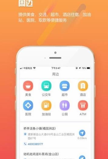2.多项生活便民服务情况清楚可见,提供美食,交通,超市,酒店住宿,加油站,医院,取款等便捷服务;