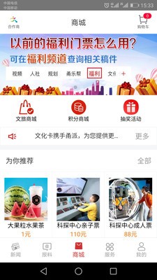 【商城】积分商城和文化卡商城,打造线上线下一体化业态。