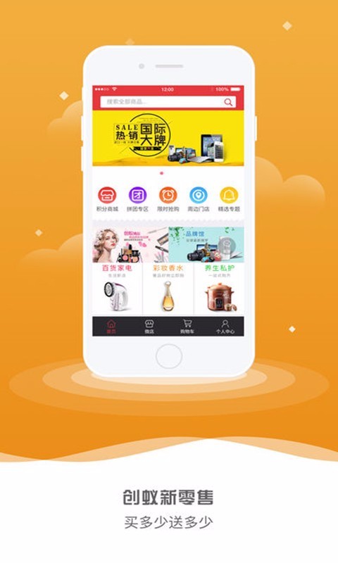 创蚁app是一个为用户打造的线上购物平台,你可以在平台以更便宜的价格购买商品,而且在购物的时候可以获得对应的积分,是一个可