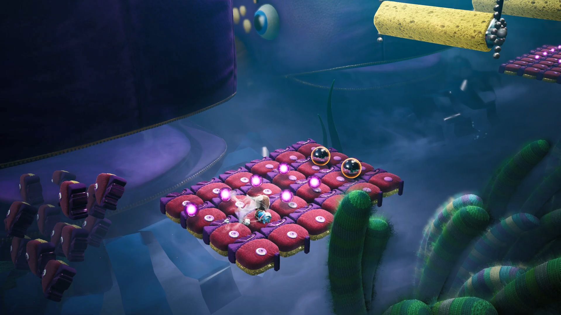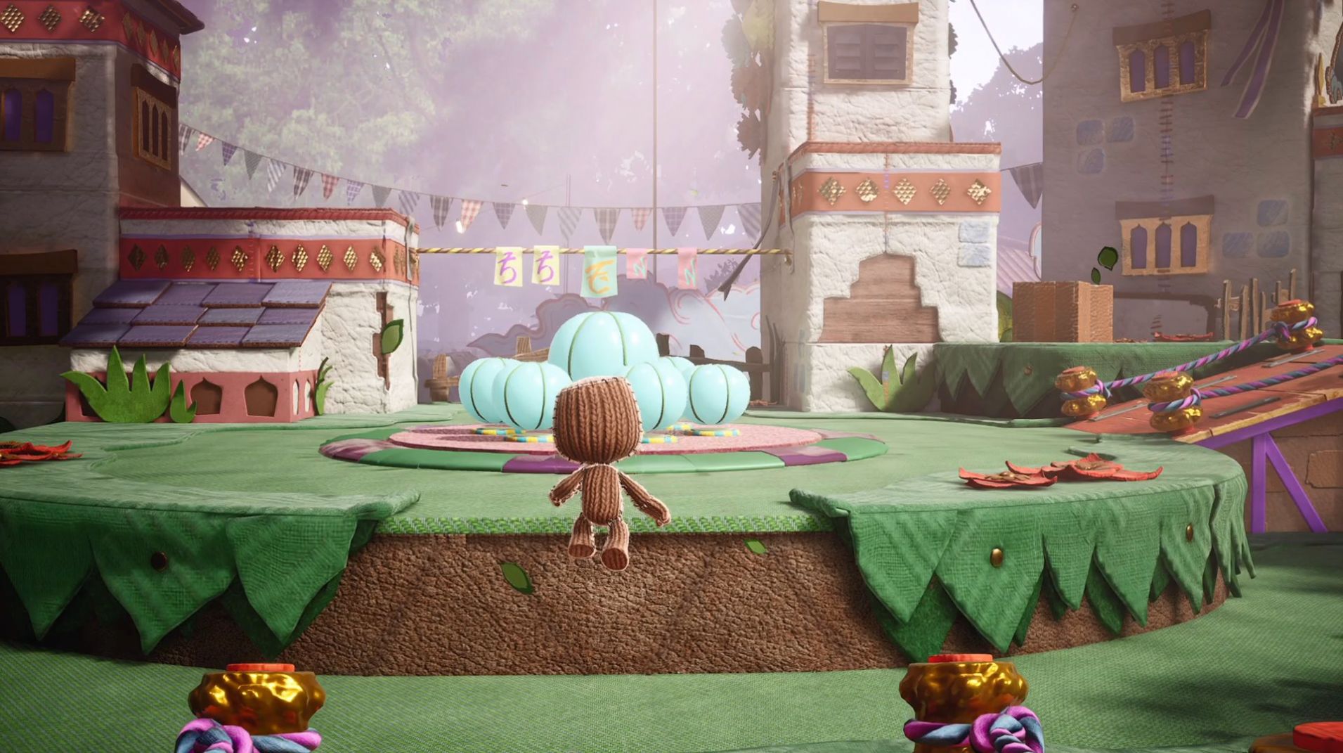 1、玩家需要操作麻布仔挑战各种妙趣横生的关卡。画风可爱的 3D 平台动作冒险类体验。