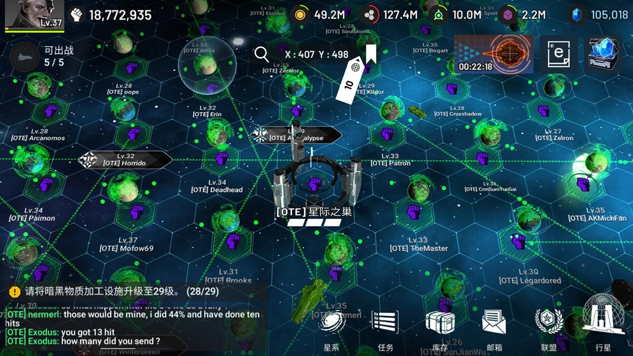 4、增加星门提升移动速度,加入探索舰,用探索船一点一点探索星系的每一个角落。
