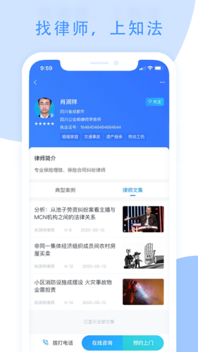3、一键呼叫,律师上门服务,执业律师,为您的事业保驾护航。