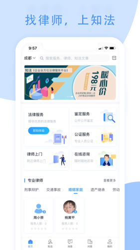 2、知法app拥有法律服务、鉴定服务、公证服务、在线咨询和律师上门等服务;
