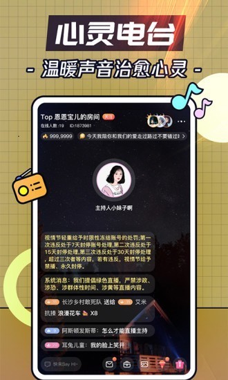 2.直接点击加入感兴趣的电台直播间就可以与主播在线上精彩互动