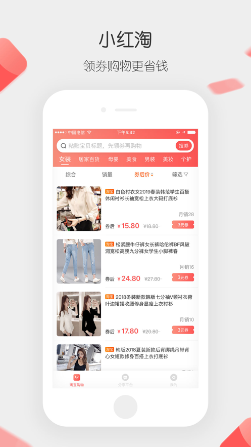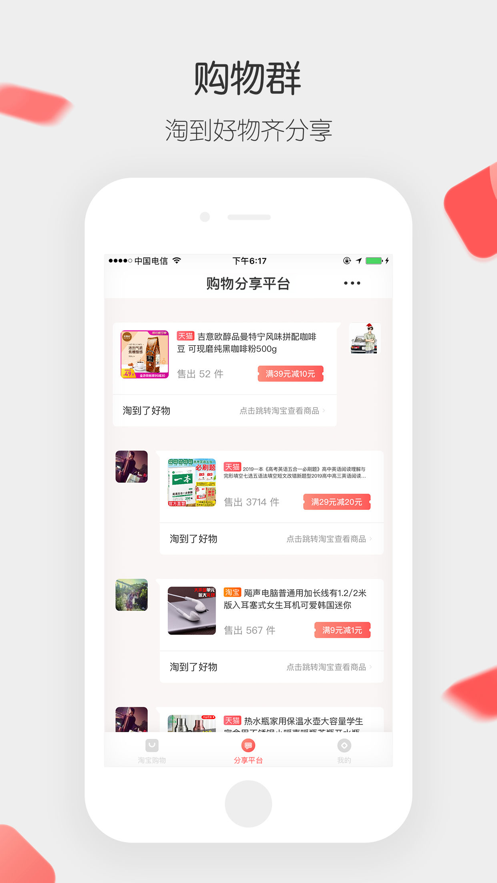小红淘app是一个购物分享、赚钱的客户端A。这款购物软件每天都会更新大量的商品。能够让大家天天轻松赚钱,领取现金红包,同时也是一款优质的电商导购软件。在这里用户不仅能够找到丰富的淘宝优惠券,同时还能创建自己的购物群,邀请吸引其他人加入这里,人越多红包自然也就越多。想体验轻松赚钱的乐趣,那就来试试“小红淘”吧!