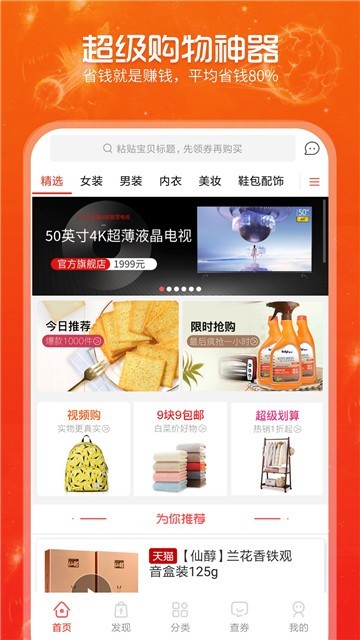 3、功能完善,9块9包邮,限时抢购,品牌清仓,爆款折扣,惠选优惠券app支持个性搜索;