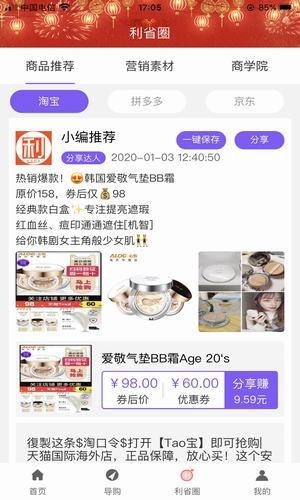 2、推动电商产业结构的升级优化,利省APP以带动新品,好品为目标,