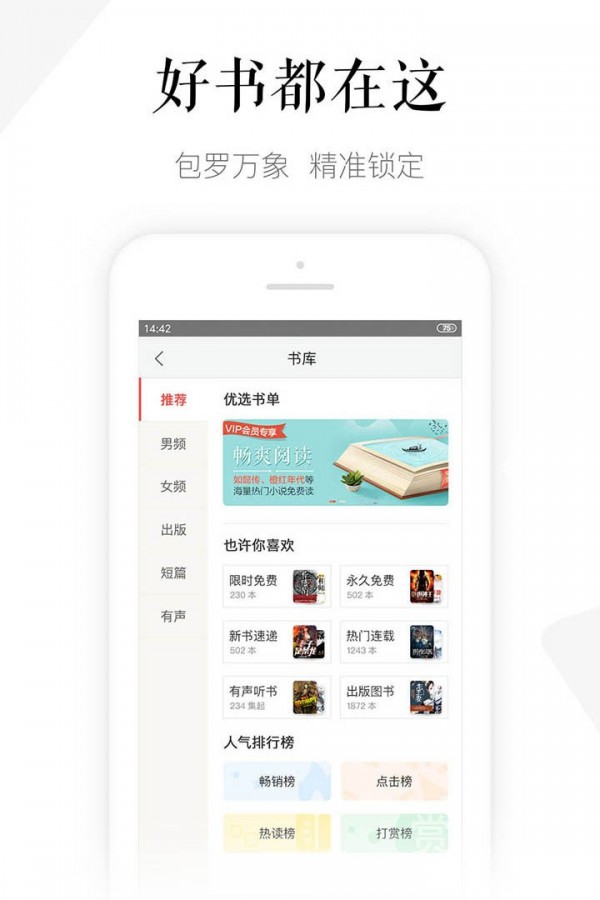 经典热读、资源无限:集合近年最流行的畅销图书和经典作品,无论国学经典、热卖小说、名人传记、养生健康……应有尽有。