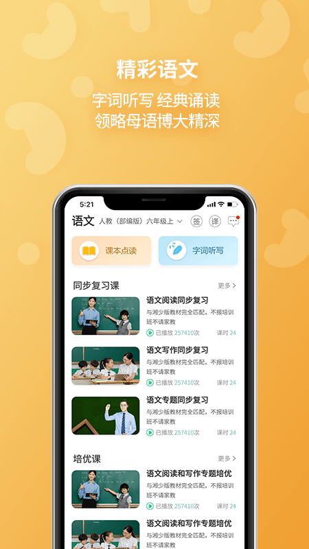 【教材】与当前主流教材配套,包含课本点读、课文动画、听课文、口语训练、语音评测、单词听写、趣味练习、听力训练、巧记单词等模块,重点解决小学英语听力和口语的教学难题,提高同步教学效果;