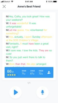 2、自动评分,实时检测听说水平。