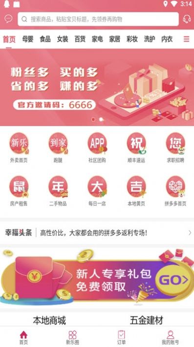 新乐到家app官网版是一款专注于城市配送的电商销售平台,让每位用户都能够找到自己满意的电商购物模式,平台采用下单及配送的运输方式,让每位消费者都能够最更加迅速的拿到自己购买的商品。在平台中还能享受专属的进货优惠服务,让每一位用户都能够买到自己心仪的产品。这里包含了您生活的点点滴滴哦!不管是日常购物,美食,团购还是本地的一些租房买房,求职找工作,打车出行这里都为您提供了呢,基本上可以满足您的日常所需,喜欢购物的亲们这里还有超级多的购物券等着您哟!