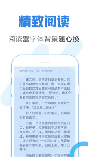 3、自定义选择小说字体,阅读背景资源切换,轻松制定个性阅读;
