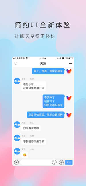 轻洽app手机版,这是一个很不错的聊天交友的平台,这里为用户提供的是多样的聊天功能,用户们能够随时在这里和自己喜欢的好友一起聊天。简单的文字聊天,彼此能够互相交心,心里的话都可以和对方说,和对方一起分享生活的美好,快乐传递给别人。这里还会提供很优质的语音聊天,随时都能开启语音哦,想听听朋友的声音,很简单,向他发起语音就可以了。这令让聊天变得更加的简单,聊天是一件很愉快,很轻松的事情,喜欢的用户赶快来吧。