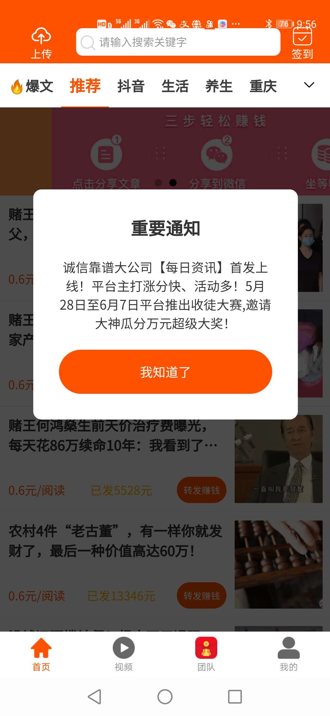 1、平台这里的各种转发收益也是很高的,分享一次获得收益是0.6元;