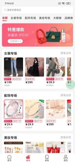 1、海量优惠券,折扣享不停。多类优惠多多,9.9包邮,每日半价,疯抢排行今日上新。