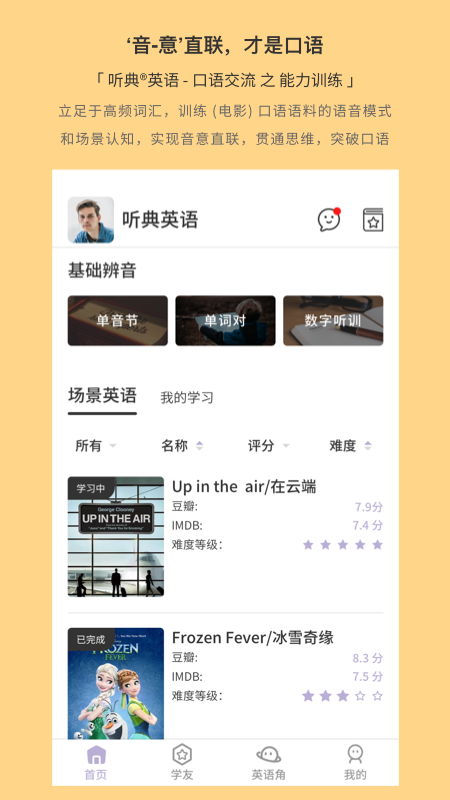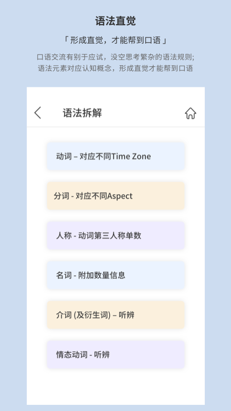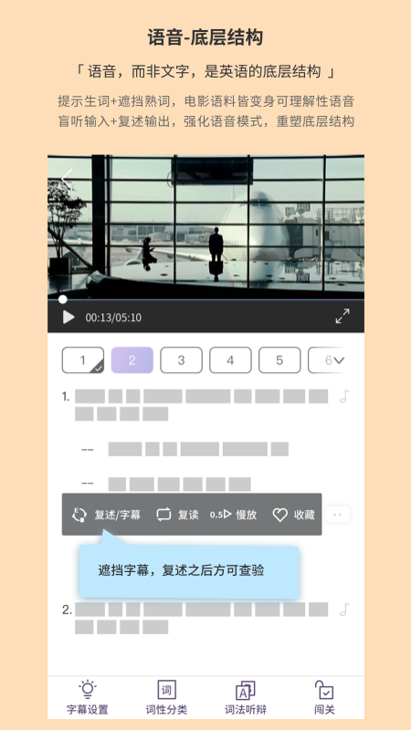 3.将单词、句子中的语法、词汇、场景含义以及中文释义等内容呈现给你,实现真正的口语能力学习;