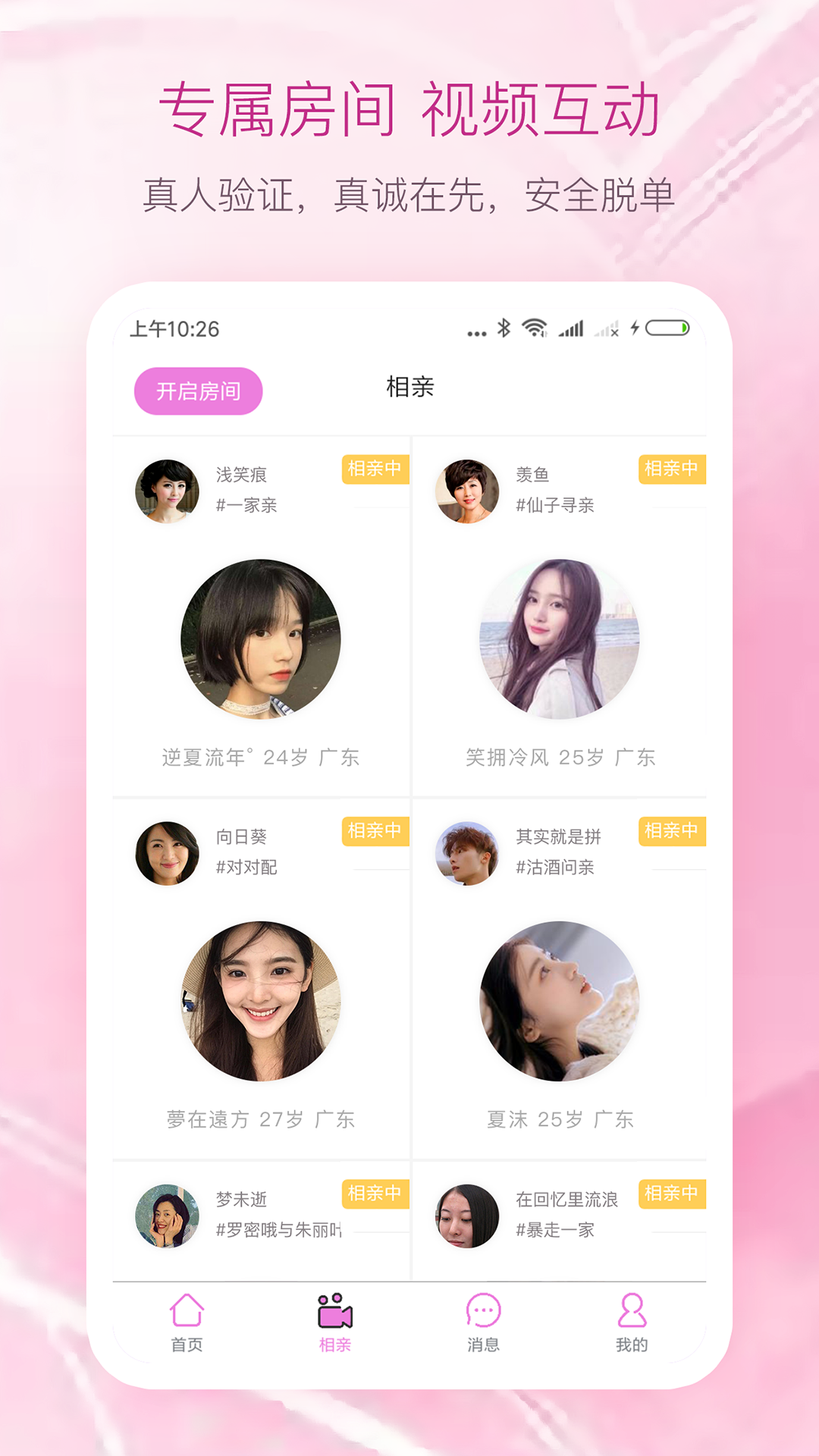 【真人验证】视频相亲,真诚在先!先在线上见面,再在线下奔现,安全有保证,脱单不用愁!