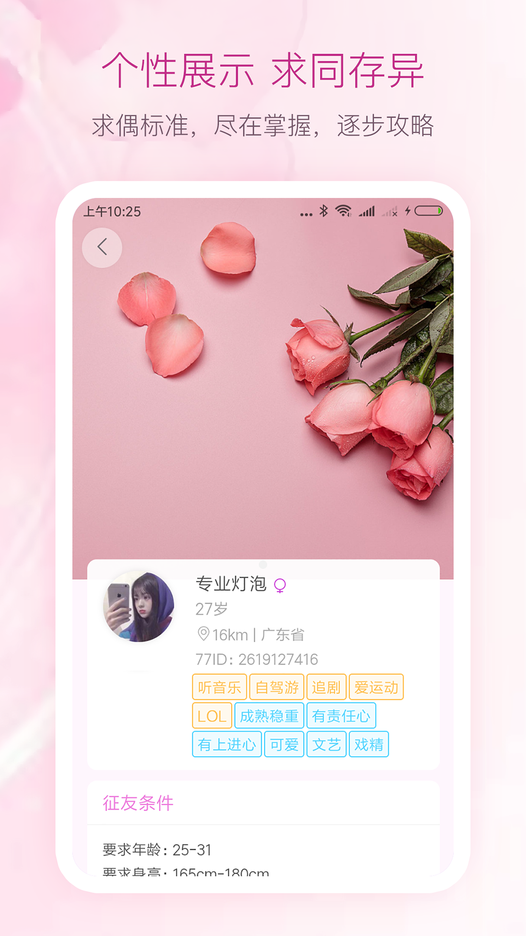 77缘app下载,一款高品质高素质的视频相亲交友平台,软件可以帮助用户精确匹配适合的异性,是一款非常专业高效的相亲app,用户可以在这里遇到许多有趣的小哥哥小姐姐,还有经验丰富的红娘在线指导,软件当中左右的交友信息全部真实有效,来77缘app帮助小伙伴们更快在茫茫人海中找到有缘人,专业红娘认真牵线,有需要就来下载。