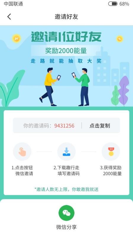 4.可以在个人中心复制你的邀请码,好友好友参与进来,这样就可以获得额外的红包提成奖励了;