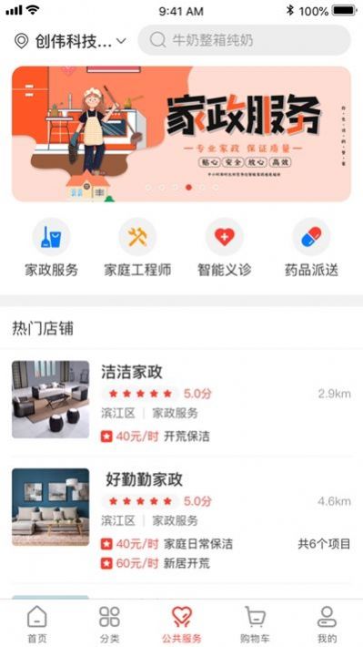 1、查看附近家政服务,能够直接查看店铺位置,方便就近预约需要的家政服务;