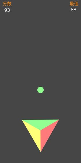 3、通过点击屏幕左右两边控制色块转动,匹配掉落的颜色小球,实现消除。
