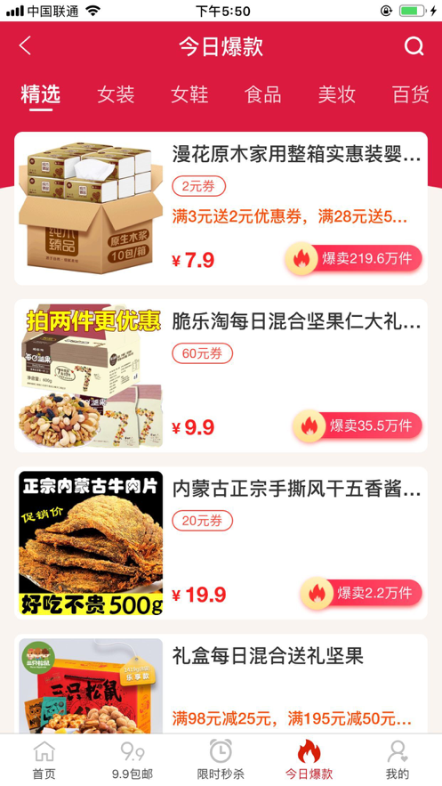 1.有全场9.9元专场的秒杀的活动,所有的商品只需要9.9元包邮带回家;