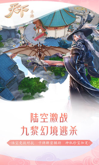 网易品质旗舰《天下》手游,是依托网易自研次世代Messiah引擎打造的3D MMORPG手游,全程CG级游戏画面,感受360°绝美景致。万顷无缝的大世界,跨越次元的实时语音互动,带来最真实最有代入感的探索与战斗体验;在游戏中,玩家可以感受到突破性的人与环境的真实互动,一花一叶俯手可拾,春水柔波光影纷繁。手游的玩法在与端游一脉相传的基础之上,又加入了大胆的突破创新,将会给喜爱“天下”的玩家们带去和端游同样精彩的体验,也会让更多的玩家体会到“天下”的精髓。多人副本、势力秘境等团队合作玩法挑战你的默契配合;江南雪竹阵、摘星楼等PVP战斗玩法数不胜数;更有丰富的社交玩法,情缘、同袍、势力组织、好友圈等,在次时代的玄幻场景中体验最真实的喜怒哀乐!