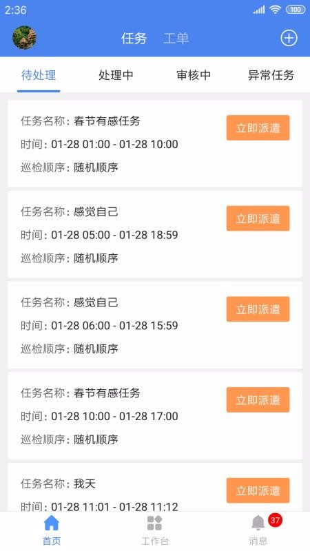 1.工单任务,直观的查看自己的工单信息,帮助员工掌握每日的工作方向,智能办公;