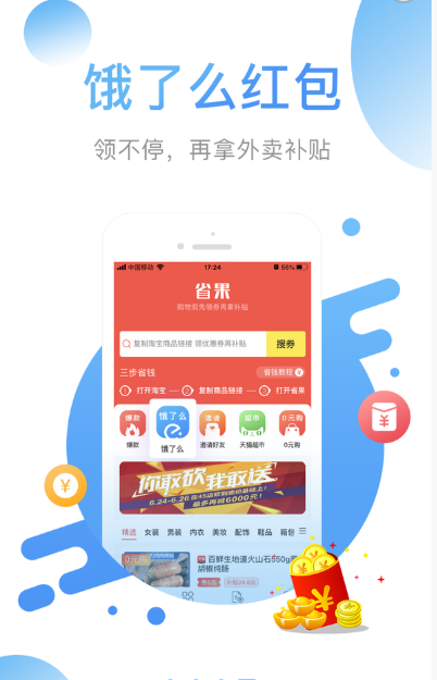 省果APP安卓版下载,一款最好用的网络购物软件,这里拥有海量的手机购物产品,每天都会实时更新,很多用户下载后好评不断,而且还有很多的优惠券,帮助用户购买到很多的性价比好物,节省更多的钱,让每一个用户在这里感受最好的服务以及体验不一样的购物乐趣,每一个喜爱购物的你,不妨可以下载体验一下省果APP。整理必备折扣券,放心网购最新单品,希望能让大家满意。每次新人注册后,还能获得网购免单的福利,秒抢天猫等平台的内部优惠券,使用门槛非常低。