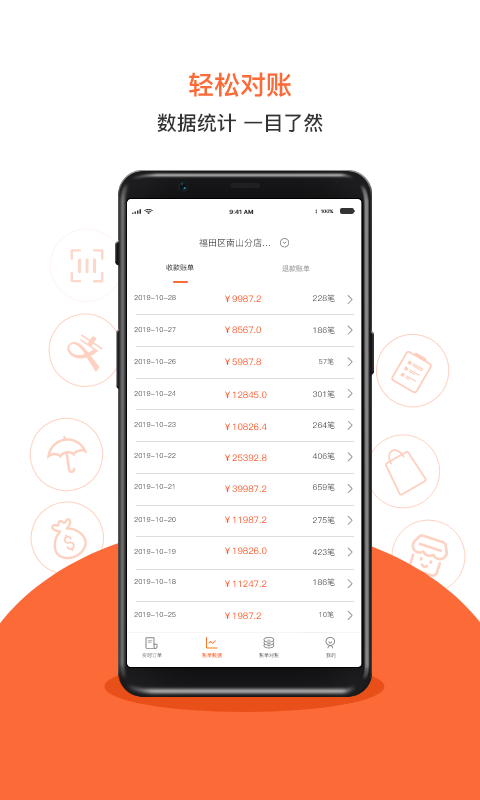 3.轻松在平台中进行对账模式的管理,每天综合的销售数据情况表格都会自动在线到处,转化为你需要的文件!