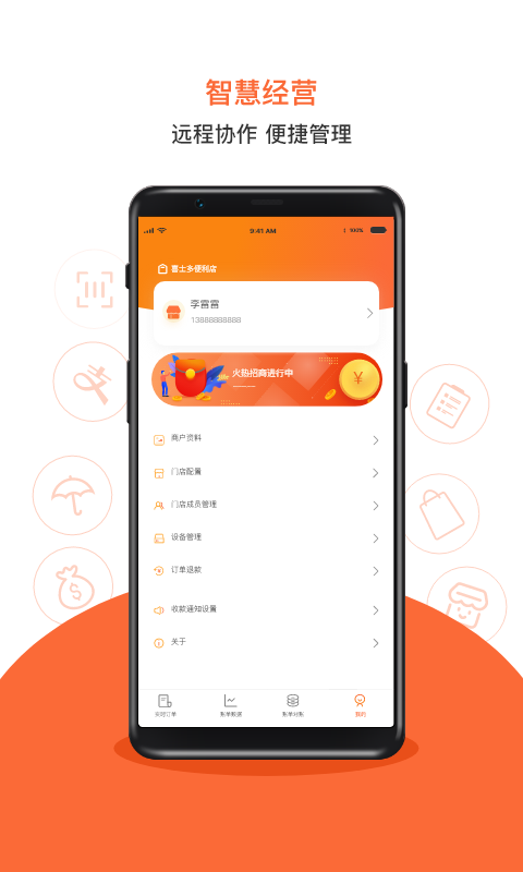 3.移动管理你的线下门店,不用在意办公环境的影响,随时都可以经营管理门店;
