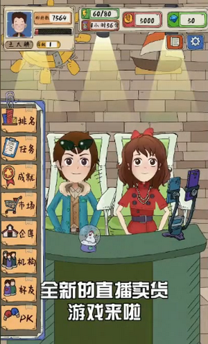带货王游戏中玩家需要利用自己的智慧完成挑战,大量的游戏玩法趣味的过程带给玩家更加完美的游戏体验,玩家在游戏中可以自由的进行冒险,全新的游戏过程让玩家可以享受更多的乐趣,玩家在其中还可以自由的探索,多种不同的带货方式让玩家走进全新的时代,带货王游戏玩家将体验一把带货主播的感受,带货王游戏玩起来新鲜且有趣哦。在带货王这里玩家可以自由设定不同货物的价格,解锁任务和成就,通过主播的带货成长使其慢慢变得有名气,其收获出来的奖励还可兑现红包哦。