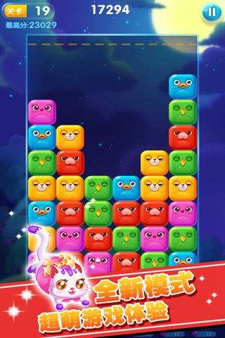 吃货串串串一款消除类游戏。这款游戏的画面非常精致清晰,游戏的玩法跟一般的消除游戏一样,三种颜色一样的消除,非常可爱的小动物和水滴等你来消除!