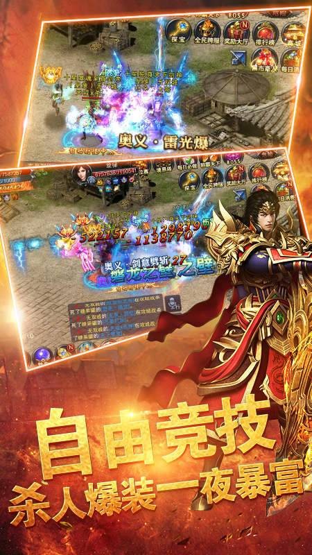 2、全地图自在PK,BOSS争取、红名爆装,竞技场王者争取,再现攻沙盛况。