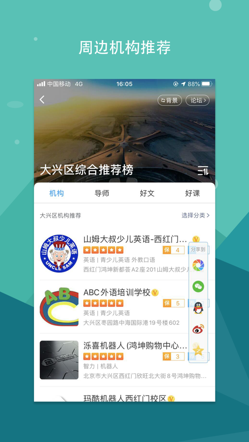 1.一款主要帮助用户快速找到符合自己要求的教育机构,可以轻松在线学习;