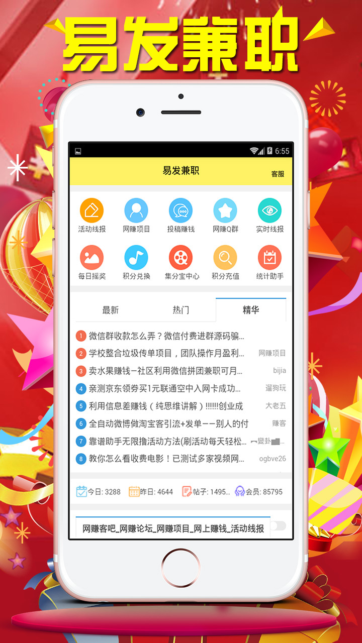 易发兼职是有易发出品,内容包含:活动线报,网赚项目,投稿Ǯ,网赚Q群等多种内容分类,提供实时兼职资讯,推荐热门消息,分享更多精华,为想兼职网赚的朋友提供一个好的APP。