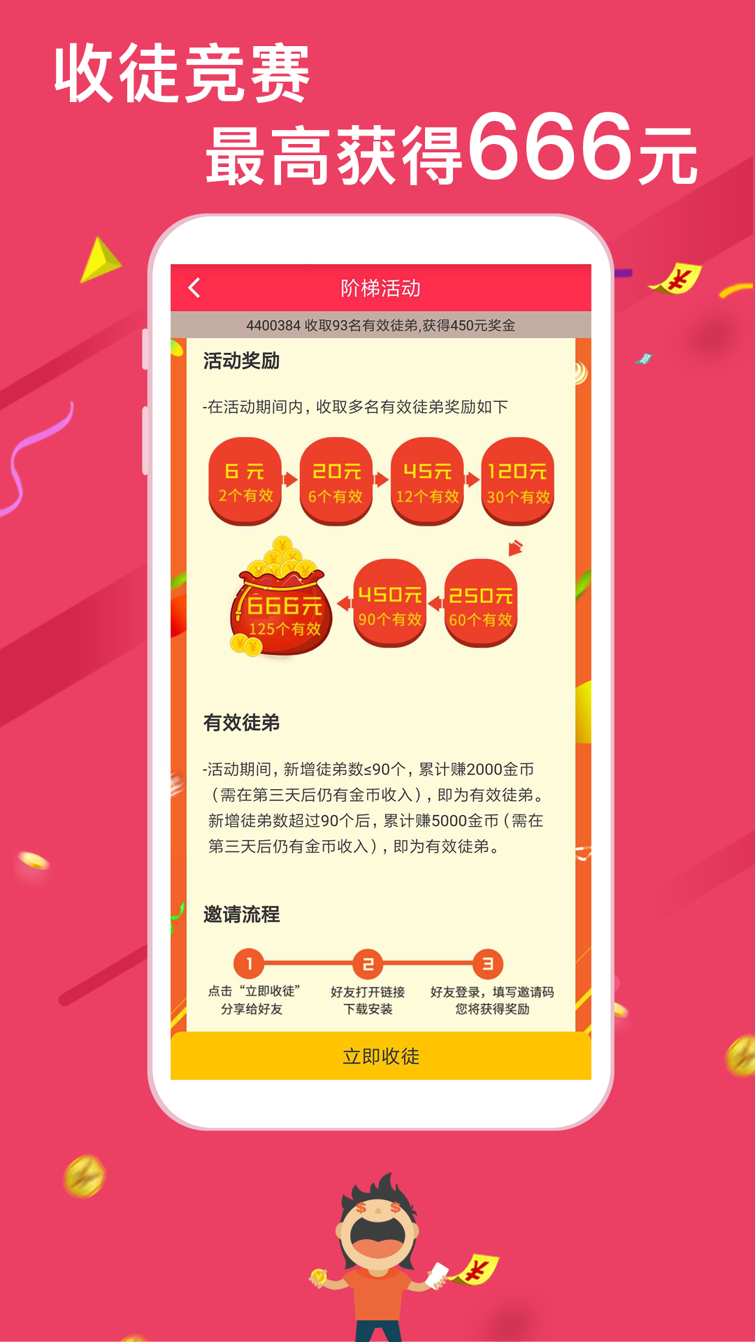 1、阅读新闻资讯,坐等提现,分享收徒,赚取零花,积累你的一笔小财富;