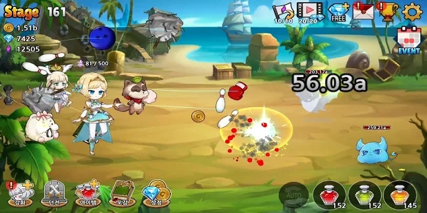 1、轻松的放置类玩法,运用每个角色的超能力来击败怪物,收集奖励提升属性;