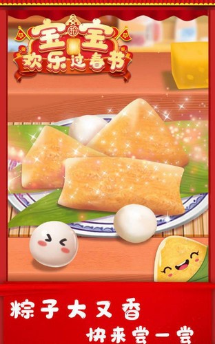 宝宝欢乐过春节是一款非常好玩的模拟经营类游戏,春节到,真热烈,一片欢声和嘻笑,喜迎春节放鞭炮,贴上对联要红包,街头巷尾庆春节,除旧迎新把年闹,在这里你不但可以或许获得许多的康乐,还能获得许多的常识上的充溢,同时你在里面还要自己做一道美食,品味一些下你自己的手艺若何。当中的一些烟花很时兴,可以给你带来一定的视觉感触感染,体验浓烈的年味。