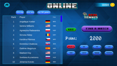 1、丰富多样的角色可供玩家选择,可以自由解锁业余、半职业和职业网球选手。