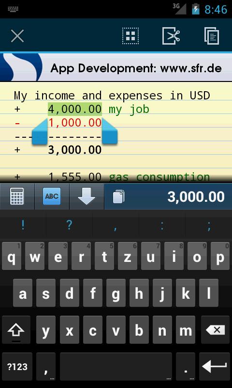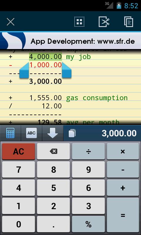 智能计算器CalcTape Smart Calculator是一款功能强大的计算器,除了能实现普通计算器的功能外,同时把计算过程以文本的方式展现出来,这些文本可以再次进行编辑,非常方便。 功能说明: - 输入一长串的值来计算的,永远不会失去概述 - 就像一个加法机纸带 - 您可以使用结构的中间结果和检查结果 - 如果以后你应该改变个人的数学表达式,那么完整的计算会自动更新 - 直观的百分比计算 - 输入单个项目的意见和结果 更新日志: - 修正了AC按钮错误 - 大型计算性能改进 - 新增数字键盘声反馈