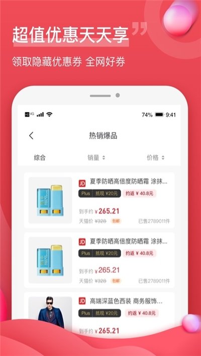 4.优化购物体验,只需要复制商品标题搜索即可查看商品优惠价,省心又省钱。