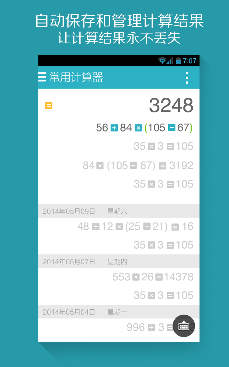 若你是生活所需,算你狠计算器可自动保存和管理计算结果,让计算结果永不丢失。