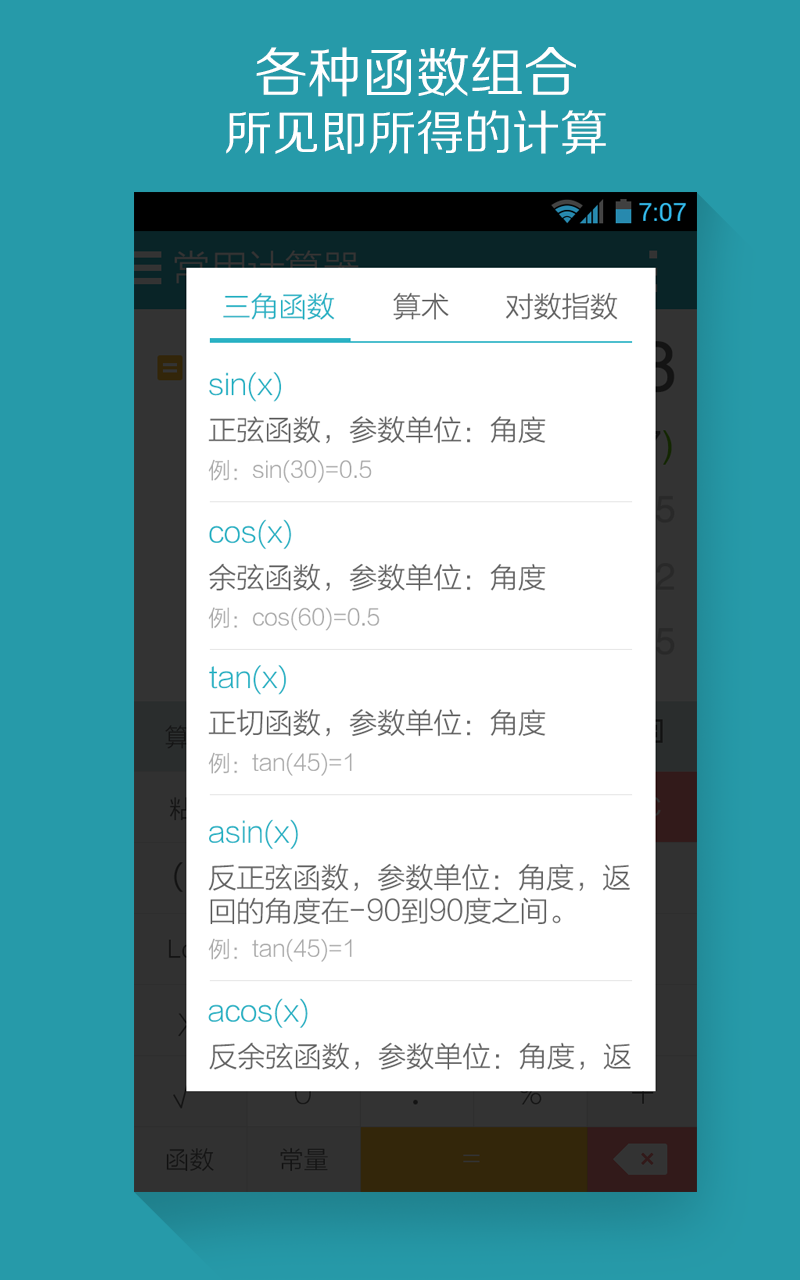 若你是在校学生,超级计算器为你准备了各种函数组合,信手可得。