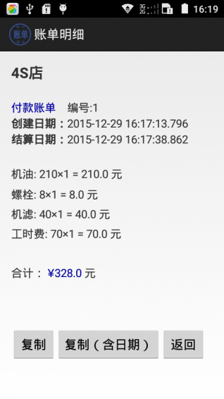 3.您可以把账单信息复制后以短信或微信的方式发送给您的客户或好友。