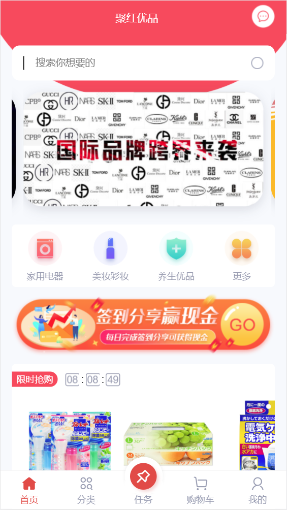 聚红优品是一款非常好用的手机线上购物软件,专门为喜欢购物的用户们推出的,这里的商品种类非常的齐全,能够满足用户们的各种购物需求,让你能够轻松的在这里买到自己需要的商品,还有齐全的售后服务为你提供!app每日定时推出多种折扣好物,折扣力度都是非常大的,竭力为用户提供舒适便利的使用体验,聚红优品app为用户提供了丰富的商品,品质有保障,这里的各类好货甚至有着百元优惠,价格也很实惠,有兴趣的欢迎下载使用聚红优品app。
