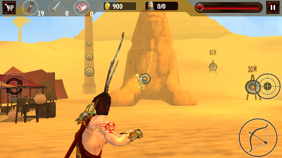 《冲突埃及弓箭手》是一个令人感到兴奋刺激的射击类游戏,它将带领你进入古埃及文明的世界。首先你需要把自己训练成射击高手,在与与敌人战斗,把你的帝国和女孩从他们手里抢回来。准备好每-场战斗, 你可以从商店中购买适合的武器如斧,剑,锤等,快来进行战斗吧!